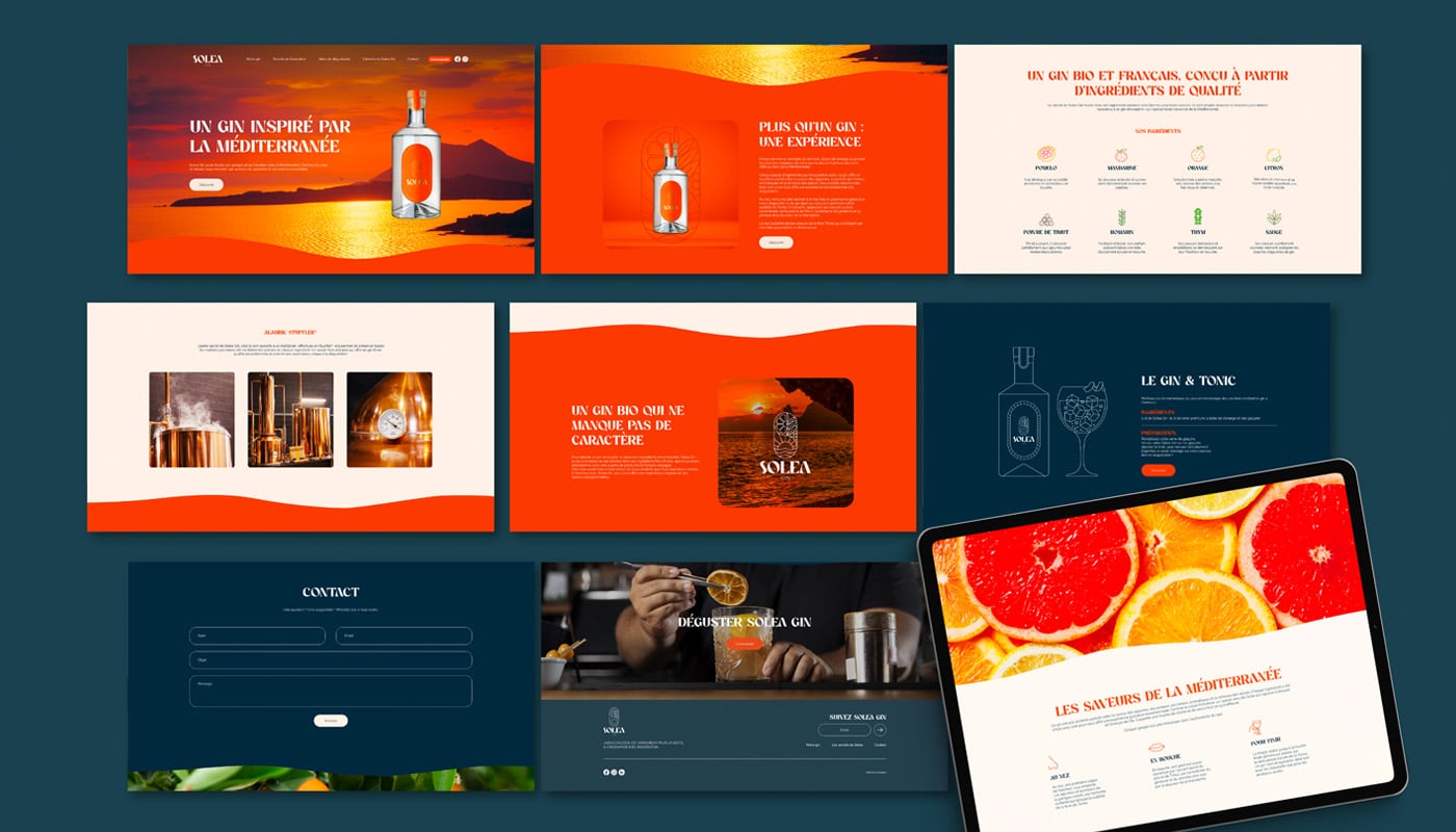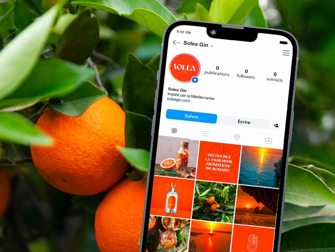 L’emblème de Solea Gin, conçu comme l’icône de la marque , s’inscrit dans un style art déco synonyme de raffinement. Ses lignes graphiques évoquent les rayons du soleil et les vagues de la mer, créant un équilibre parfait. Cet emblème devient un élément graphique à part entière dans l’univers de la marque.